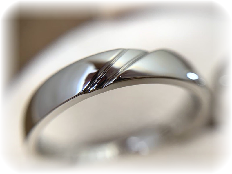 「どこのジュエリーショップの結婚指輪を見ても細身で華奢なデザインばかりでした。若い人にはそれでもいいんでしょうけど、私たちはもっと厚みや太さもしっかりとした、存在感のある結婚指輪が欲しいです」と、ジュエルミキ来店予約をしてのお二人でのご来店でした。