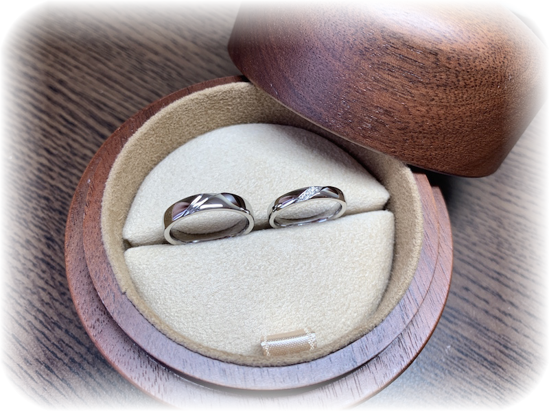 実際にサンプル品を試着してみて、細すぎず太すぎず、お二人の指の大きさ、の大きさにもベストな結婚指輪じゃないかと、とても気に入って下さったご様子でした。