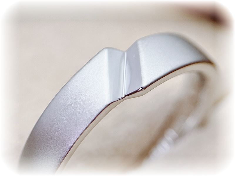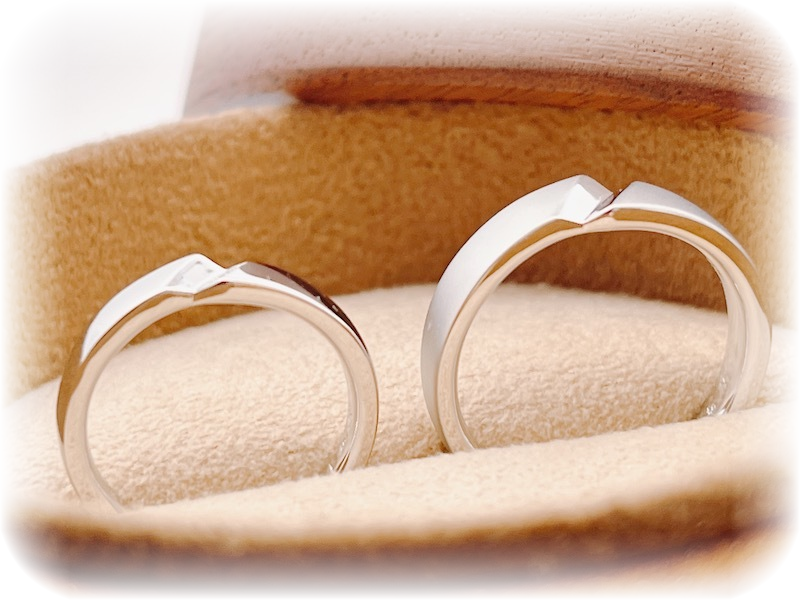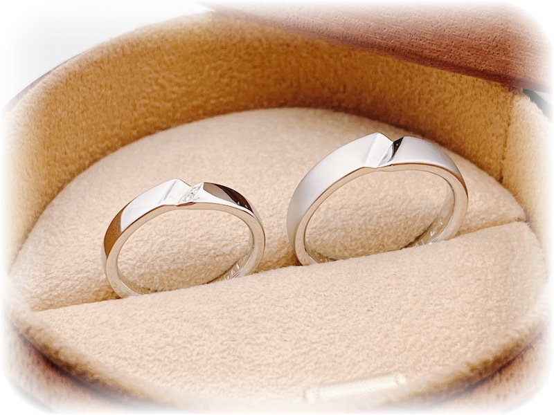 出来上がりをご覧になって「この艶消し仕上げ、ホーニング仕上げの美しさに感激しています。本当にすごい技術ですね。そして自分だけのオリジナル感もあって、大変気に入りました。コラニーの高い品質や、こだわりはもちろんですが、ジュエルミキさんの親切丁寧な接客もとても良かったです。色々なお店に行きましたが、結構売りが強くて自分達のことよりもお店側の都合の話が多くて嫌気がさしたお店もあったくらいです。ジュエルミキさんはそれが全くなかったのが印象的でした。ありがとうございました」と、喜んで頂きました。
