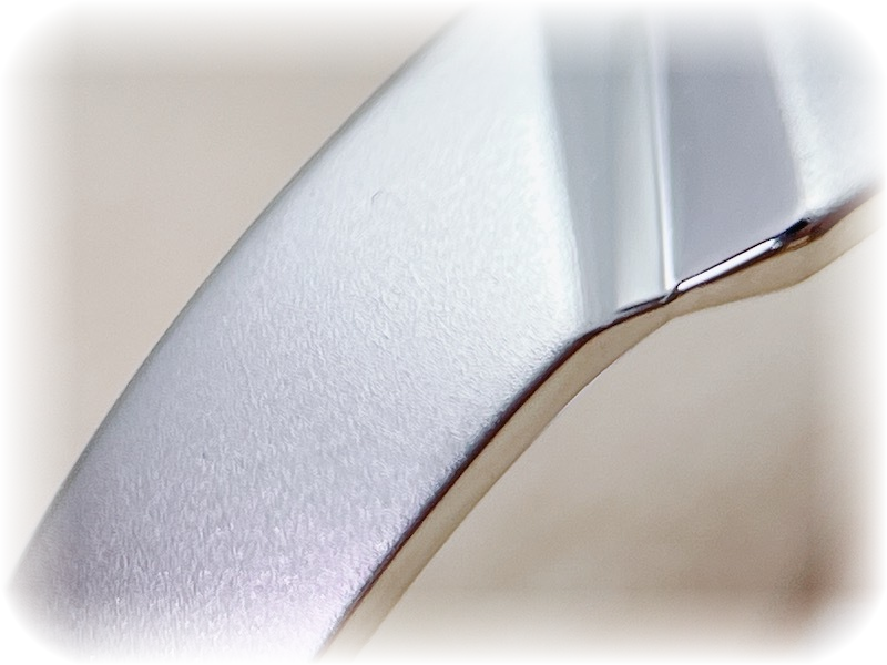 機械研磨では表現できない甲丸部分の丸みとフラットな面で構築されている絶妙なラインは、 職人の程よいバランス感覚と磨きの技で支えられています。