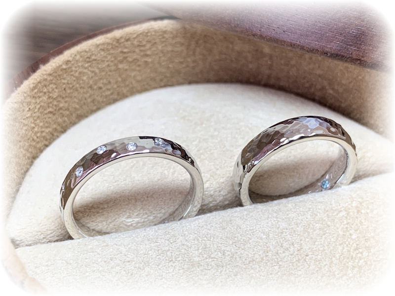 「どこの宝石店に行っても、結婚指輪のデザインや品質が同じようなものばかり。ありきたりじゃない、ありきたりとは一線を画す結婚指輪を探しています」と、お二人でご来店されました。
