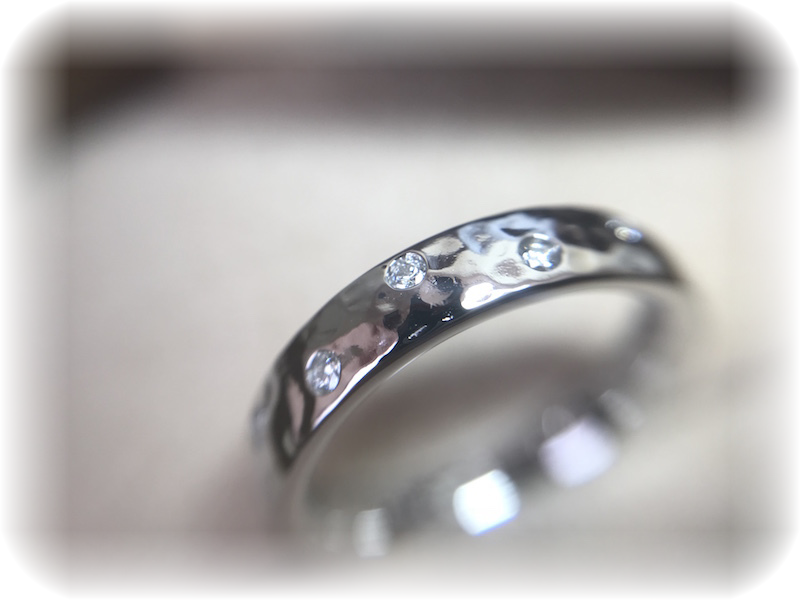 「結婚10周年記念の指輪を探しています。単なるシンプルなデザインよりも、せっかくの記念に買ってもらう指輪だから、忘れられないデザイン、個性的なデザインがいいかなあ」と、ご家族でご来店頂きました。