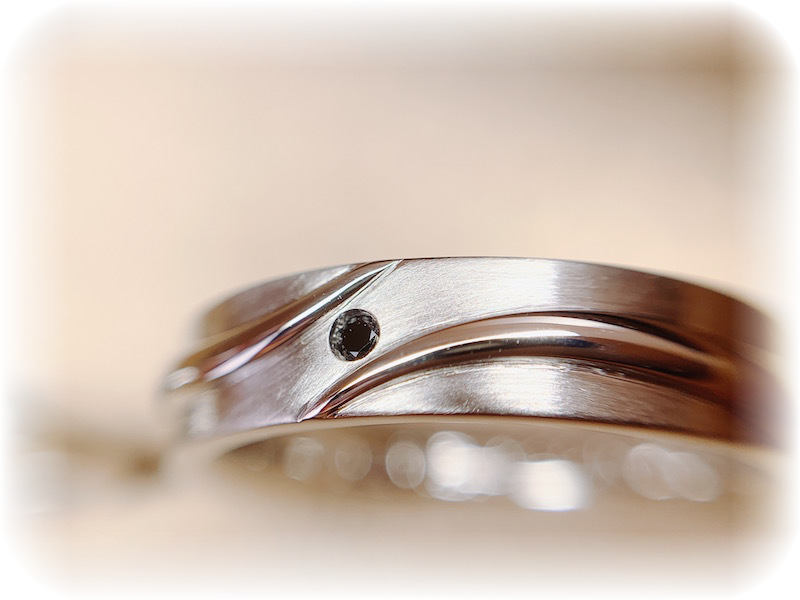 メンズはオプションでブラックダイヤモンドを。太身と細身の結婚指輪を探していたお二人が選んだのはコラニーでした。