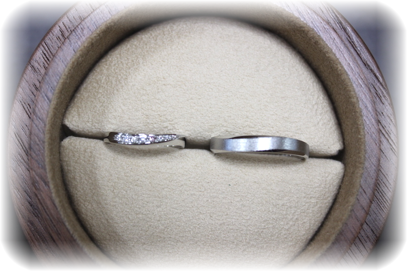 出来上がりをご覧になって「たくさんの結婚指輪を比較検討してきましたが、コラニーの指輪はつけ心地が抜群にいいんです。他のブランドと全然違っていました。ずっとつける指輪だから、このつけ心地の良さは外せなかったんです。とても気に入っています。ありがとうございました」と、喜んでいただきました。