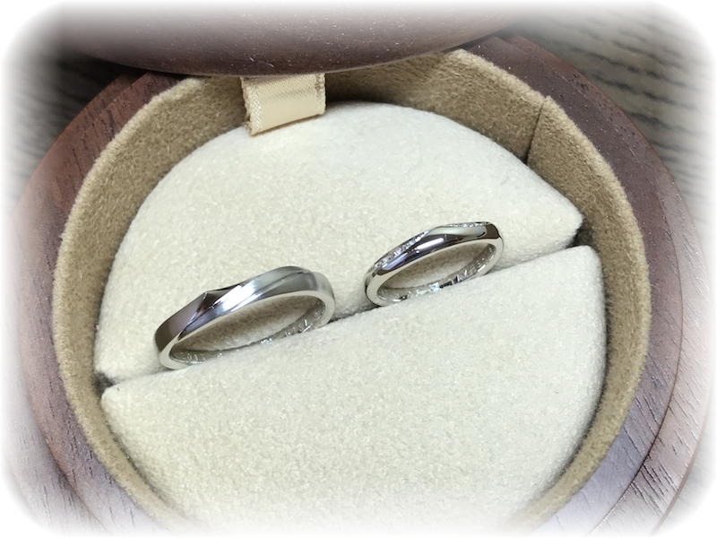 「結婚1周年記念日です。去年結婚の時に、金銭的にいろいろあって買えなかった結婚指輪です。今年は絶対に買ってあげたいと思って頑張ってきました。」と、お二人でご来店されました。