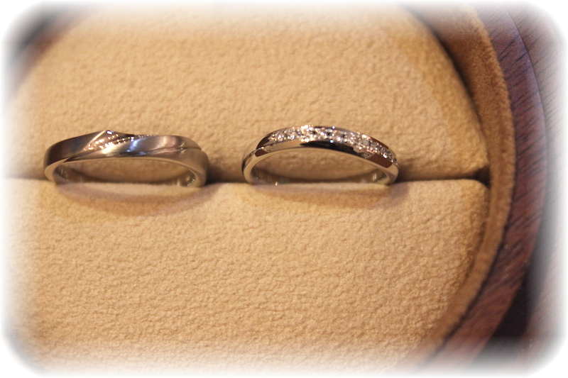 「延岡で結婚指輪を探してネットで検索していたら、ジュエルミキさんのホームページが出て来ました。お客さまの声や指輪の事例がたくさんあったので、それらを見て共感する部分がたくさんあったので来ました」と、ジュエルミキの来店予約をされてから、お二人でご来店されました。