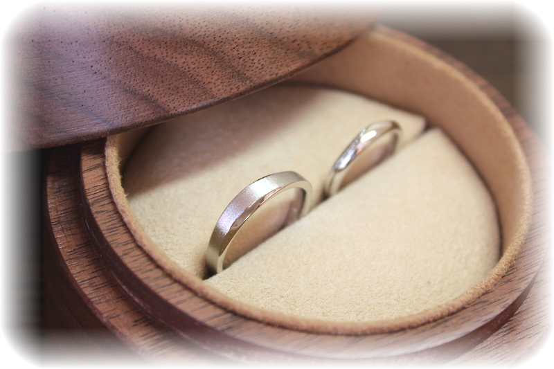 「仕事中もずっと結婚リングをつけていたいので、シンプルで邪魔にならないデザインでありながらちょっとこだわりを感じる結婚リングを探しています」と、お二人でご来店されました。