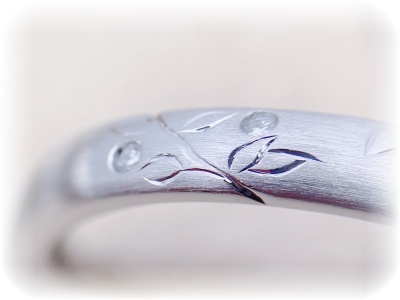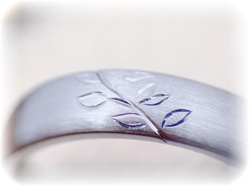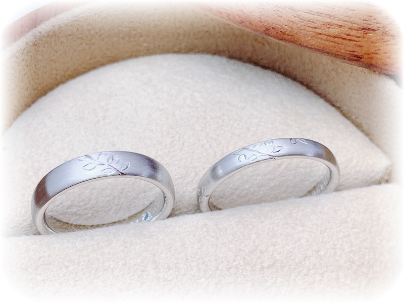 よく見ると、メンズとレディースを重ねることで、1本の繋がる木になるデザイン、しかもそれが手彫りでデザインされているところが、とても気に入ったようでした。