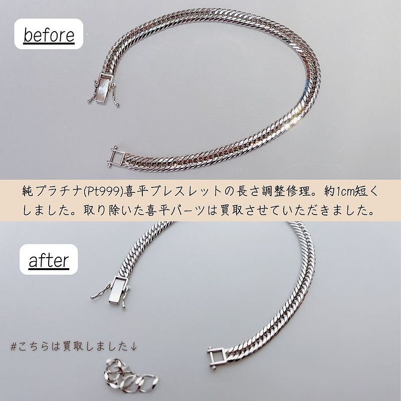 純プラチナ(Pt999)喜平ブレスレットの長さ調整修理。約1cm短くしました。取り外した喜平パーツは買取させていただきました。
