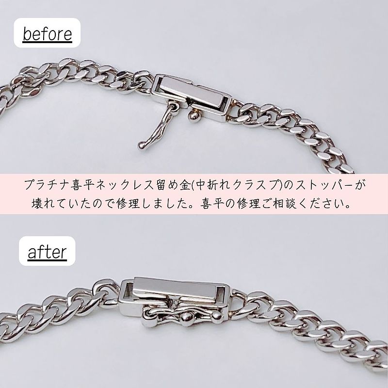 喜平チェーンネックレスやブレスレットのトラブルや、長さ調整したいなどお困りの方は、ぜひこちらの事例をご覧になって頂き、参考にしてください。