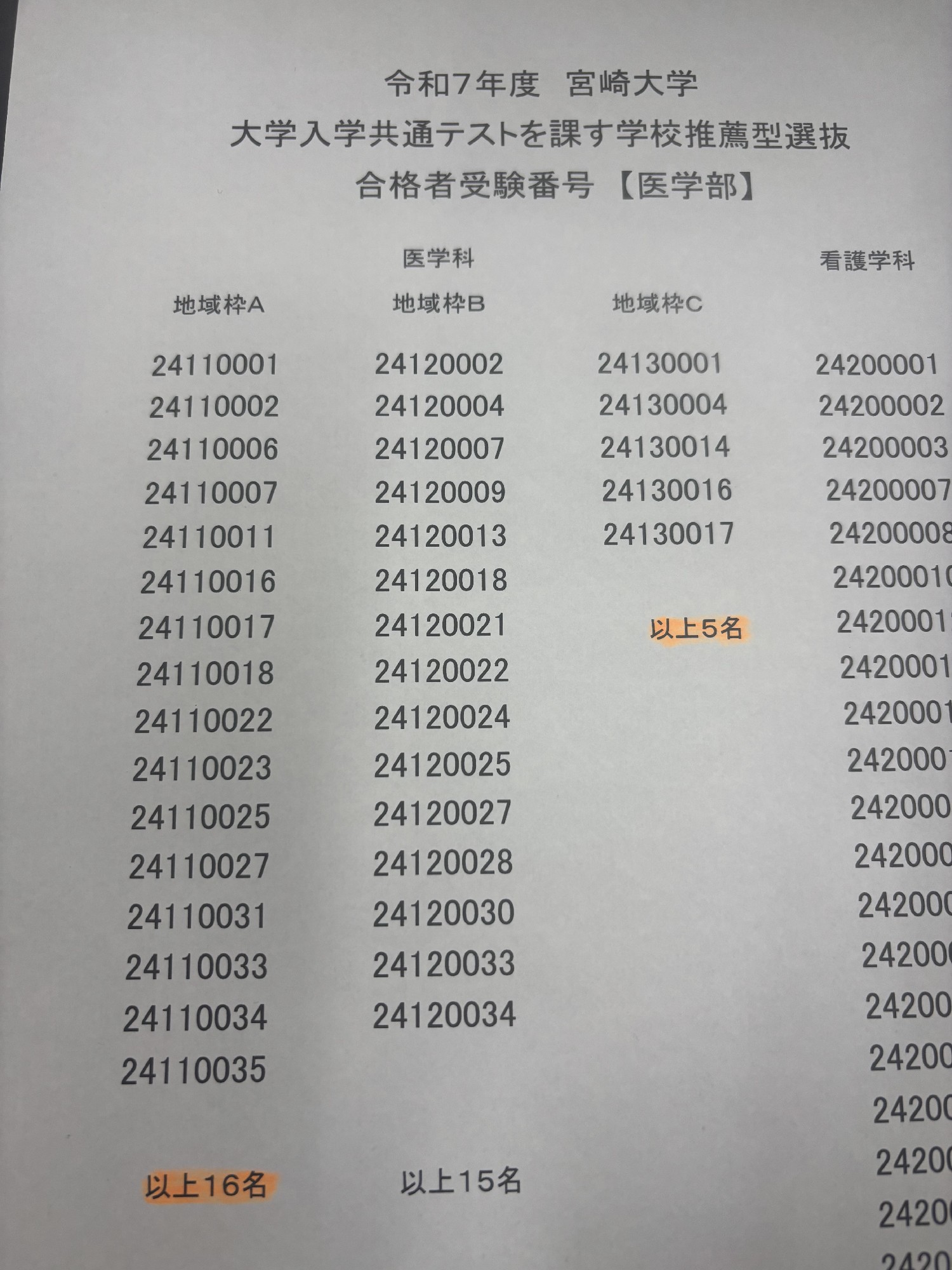 本日の宮崎大学医学部医学科地域枠推薦の合格発表でわかったこと。