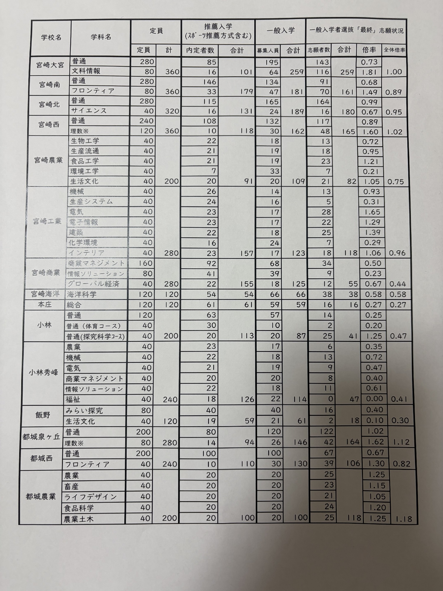 大宮高校の倍率が1.0倍でした。
