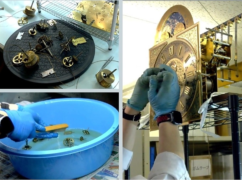 腕時計と同様にムーブメントを分解し、各パーツの洗浄・破損パーツの交換等を行い、再度組み立てます。
