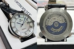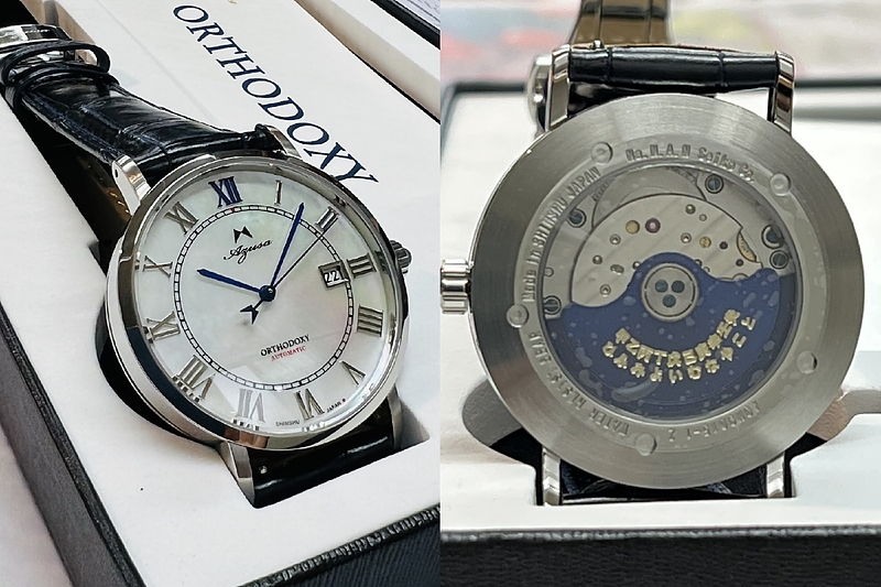 HP問い合わせフォームより、何か形見として残せるものが無いかということで、弊社オリジナル時計Azusa ORTHODOXY回転錘への刻印依頼を受けました。お渡し後にメールで頂いた感想です。※原文のまま記載【時計屋復刻堂を選んだ経緯】◆終活爺が、愚息に押し付ける形見として、回転ローターに(座右の銘)漢字刻印入りの自動巻き時計を思いつく。◆ローターに漢字入れ可能なメーカーを探す。◆「自動巻き」&「ローター」&「文字(漢字)入れ」等のキーワードでググルも、米国、ドイツのメーカー以外はヒットしない。時計の刻印はローマ字だけであり、アルファベットの文字入れに対応してくれるメーカーはある。ダメ元で国内メーカーに問い合わせるも、漢字は駄目。◆手当り次第検索中に、偶然(奇跡的?)に時計屋復刻堂にたどり着くが、予算より安くて品質を疑う。大阪では実物を確認できないため二の足を踏むが、日本のメーカーでは此処だけなので問い合わせると、対応可能との回答有り。◆仕上がり図面による提案があり、個人による面倒な注文に対する真摯な対応に心を動かされ、発注する。何と、試作のローターまで作って下さる対応に脱帽。【受領後の感想】◆写真だけで購入を決めたが、予想以上の品質に驚く。写真では判別不可能(老眼&近眼&乱視)なディテールに惜しみないコストと手間をかけている。◆外観はシンプルだが、文字盤、時針、分針、(先端を鋭く曲げた)秒針が作りあげる空間は、百貨店で現物を見て検討していた数倍以上の価格帯の一流ブランド時計と比べても遜色ない仕上がり。職人の技量は、一流である。◆文字盤上にある青色のパーツ、12時のローマ字、時針分針、秒針は色濃度が異なり、光の反射(針の断面形状の差異(三角、平面)と秒針先端の曲げ加工)も利用して立体的に見せている。◆歪のないガラスを通して見える世界は、日光、薄日、蛍光灯、LEDの光で变化して楽しい。斜め横から観察すると、真珠母貝の文字盤上に配置されたローマ数字(立体部品)のエッジが強調され、数字が浮かびあがり驚かされる。◆ローターへの刻印の出来栄えはイメージ以上で言うことなし。漢字への見事な彩色は技量の現れ。◆時計の精度は価格帯を超えるもので期待以上。コスパの良いムーブメントを技量で補ったものだと思われる。◆コスパ最高のオリジナル刻印入りの時計【今後】◆望外の出来栄えに自作の遺言?を刻印した時計を妄想中。「よーそこの若いの、俺の言うことを聞いてくれ「俺を含め誰の言うことも聞くなよ!」」◆俳句、短歌、口癖、歌のフレーズ、等々を刻むのも面白そう。◆念仏、真言、マントラ、等もありかも。