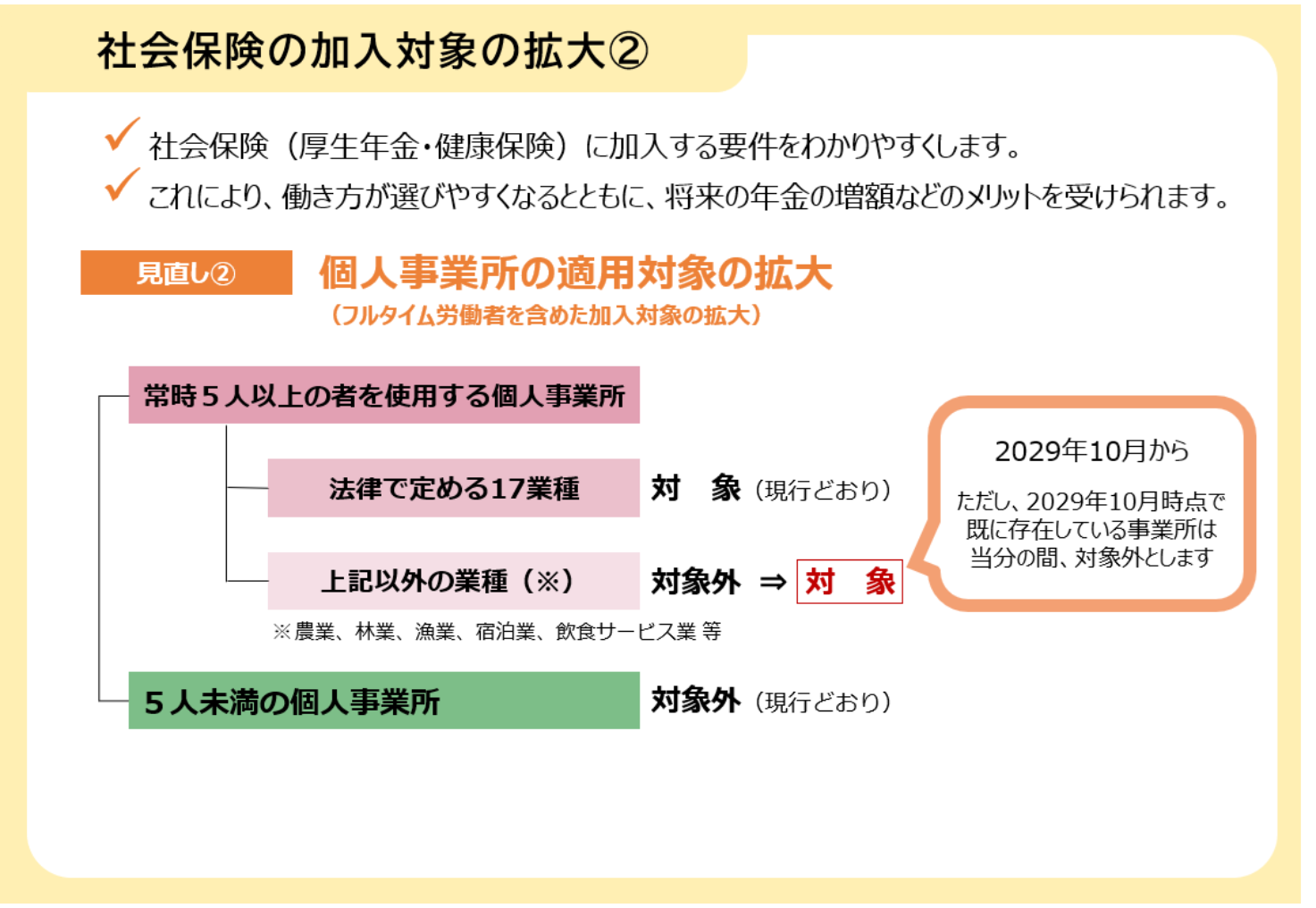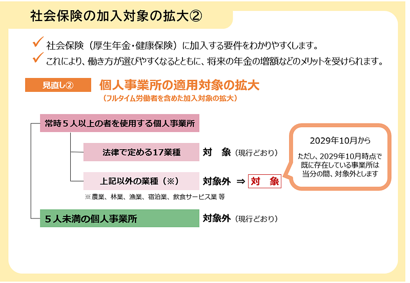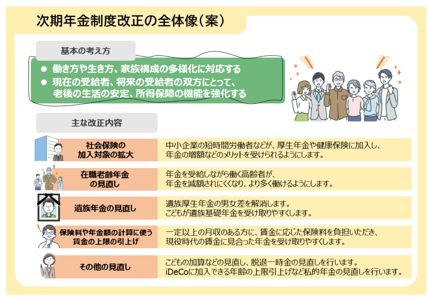 全体像をみると、社会保険の加入対象拡大だけでなく、保険料の上限引きあげなど、いくつかの改革案も含まれます。