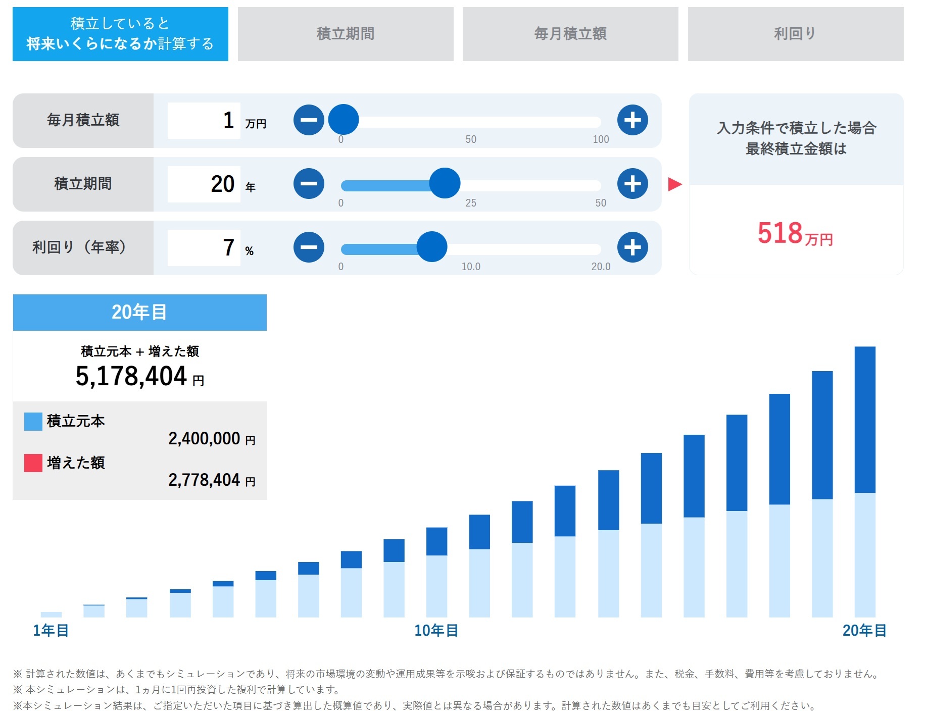 ※SBI証券積立シミュレーションより試算