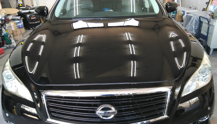 日産フーガのガラスコーティングご依頼いただきました。ボンネットの塗装がかなり劣化していて、再塗装を実施したとのことで、今回は再塗装後のボンネットと左右のフェンダーとフロントバンパー周辺。ドライバーから見て運転席から先のコーティング依頼でした。
