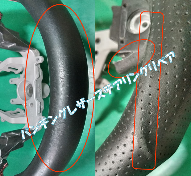 これまではお断りしてきたパンチングレザーステアリング補修、状況によっては補修可!