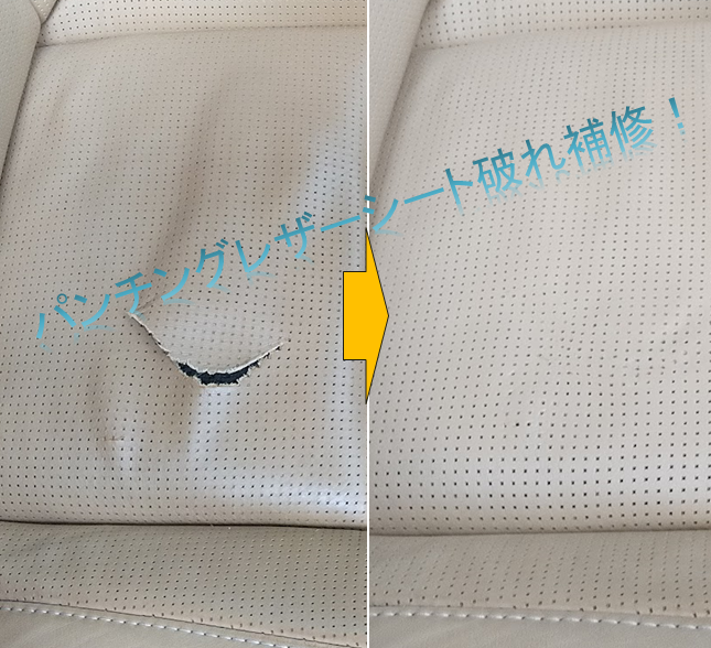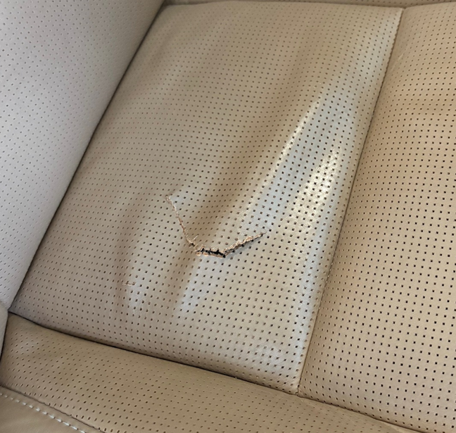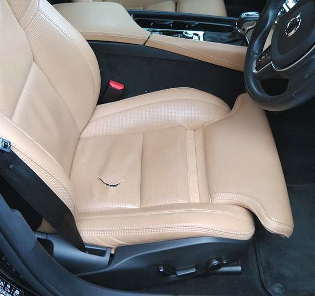 VOLVOパンチング本革シート破れ!パンチングの穴が!・・・。