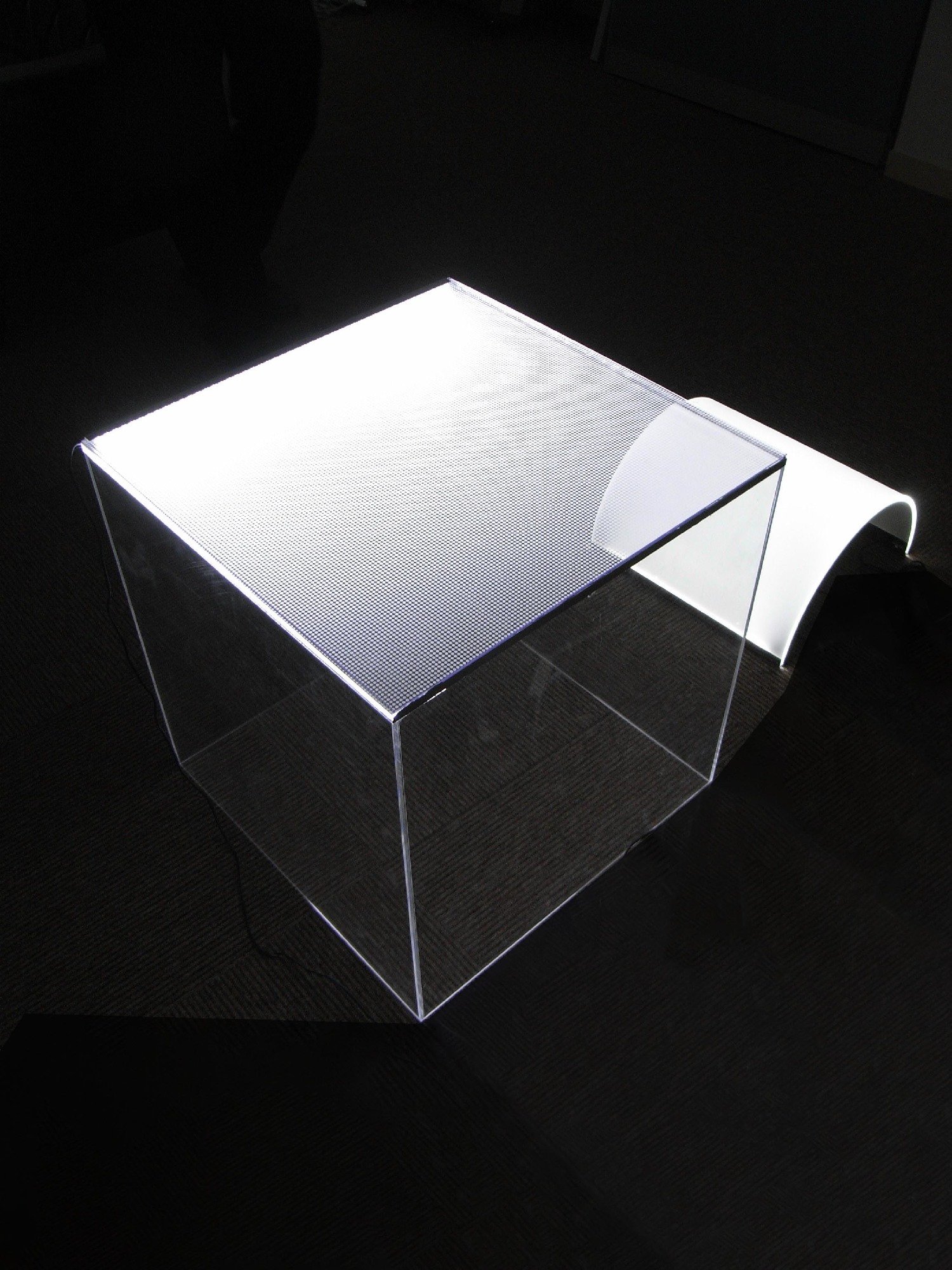 桐生株式会社 LEDの導光板そのものを照明器具としたデザイン 薄い導光板は、それ自体で様々な光のカタチを作り出すことができます。