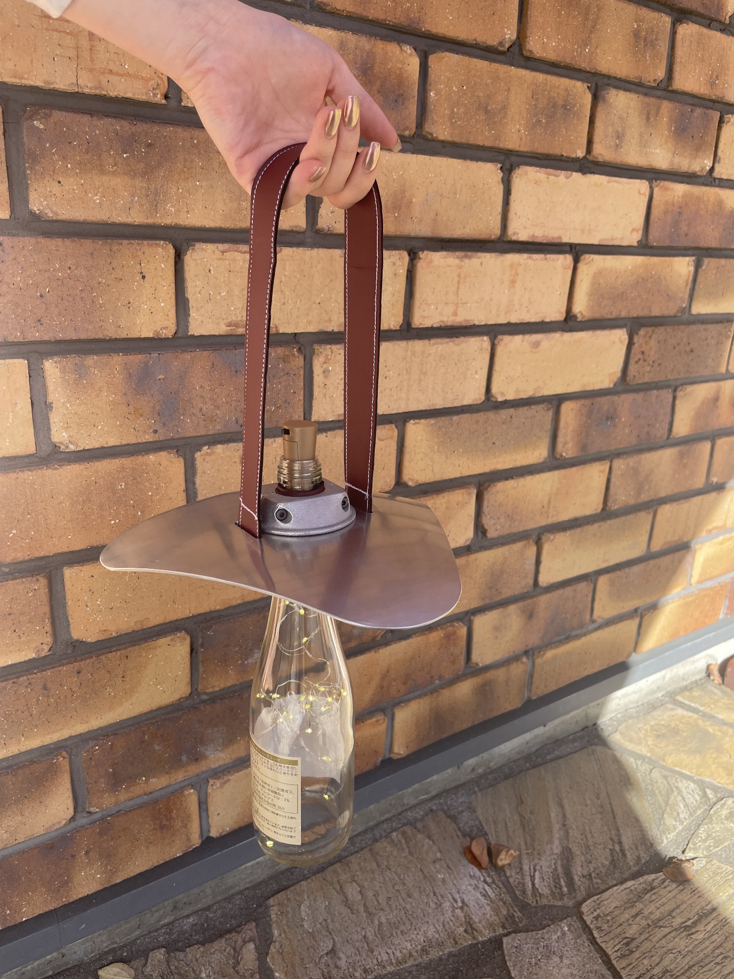 BEB5 星野リゾート 株式会社SORENA 吉田工業株式会社 サスティナブルをテーマとしたクリスマスイベント シードルボトルランタンのデザインを行いました。 りんごの残滓を使用したりんごレザーとリサイクル率の高いアルミのシェードを設けたランタンは、ルーローという形状を持ち、様々な縁が回り続けていくイメージをデザインしています。