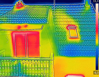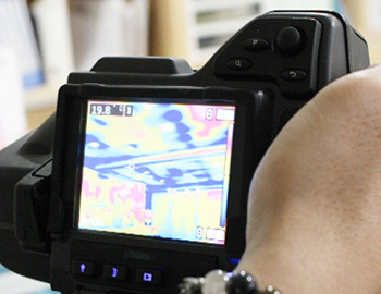 目に見えない温度の違いを赤外線カメラで可視化し、内部に潜む水分を検出します。