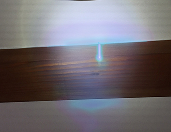 蛍光色に発光する「発光液」を使い、水が壁のどこから入り、どこを通って室内に漏れてくるのか、その経路を目で追う調査法。