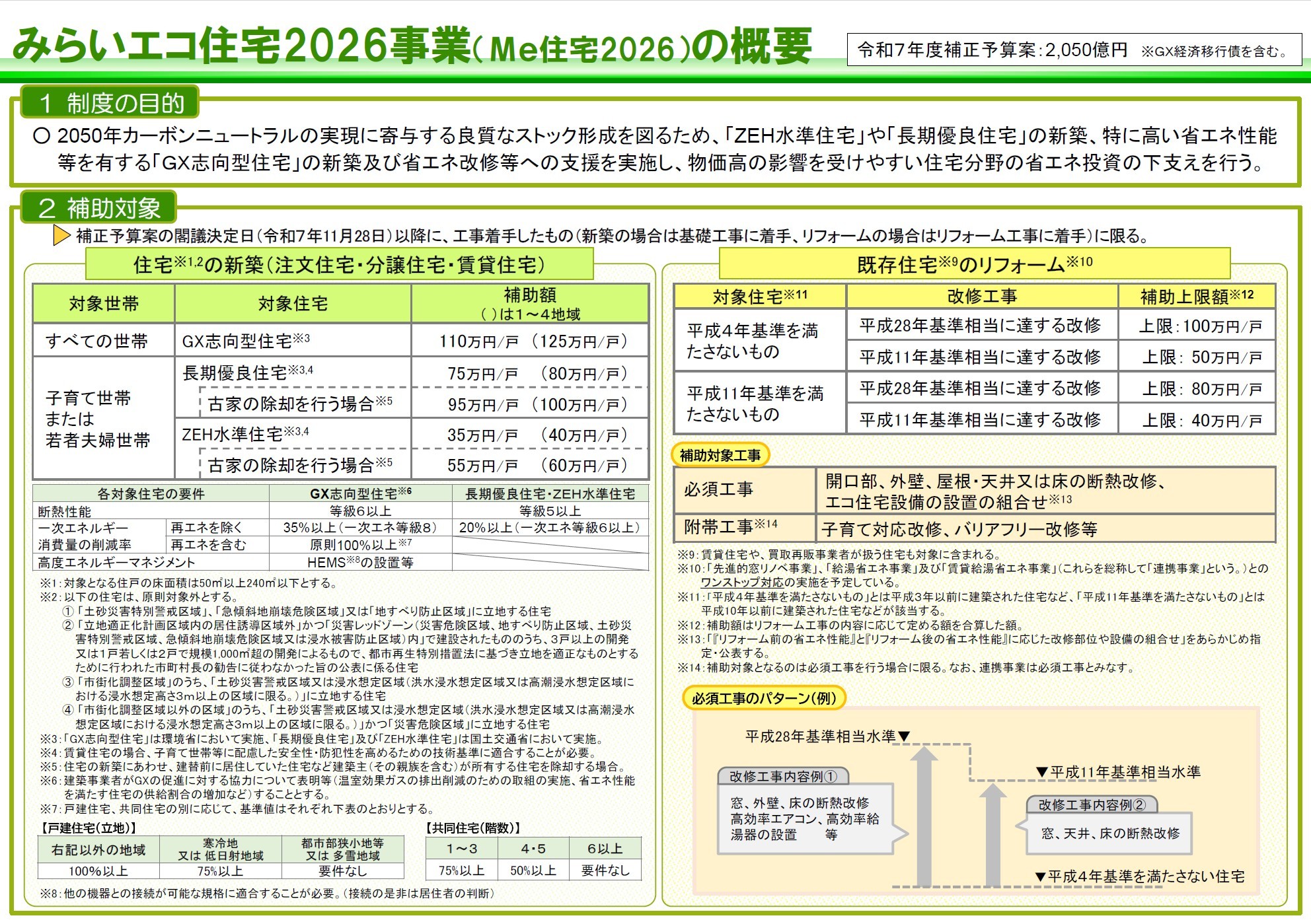 【事業名称】みらいエコ住宅2026事業(Me住宅)