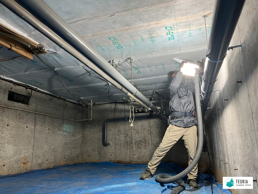 2年前に1度ご相談いただき、中古住宅の他工事が終わり落ち着いたタイミングで床下断熱工事をご依頼いただきました。 広い床下空間は空気が動きやすいため、スタイロフォームがありましたが底冷えがつらかったご様子。 今回の工事では、スタイロフォームの上からセルロースファイバーを120mm施工しています。綿状の断熱材で、隙間なく施工させていただきました!
