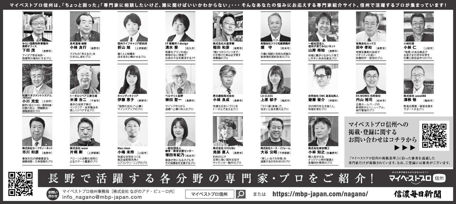 2025年4月18日(金)信濃毎日新聞に「マイベストプロ信州」の顔写真付き新聞広告が掲載されました!