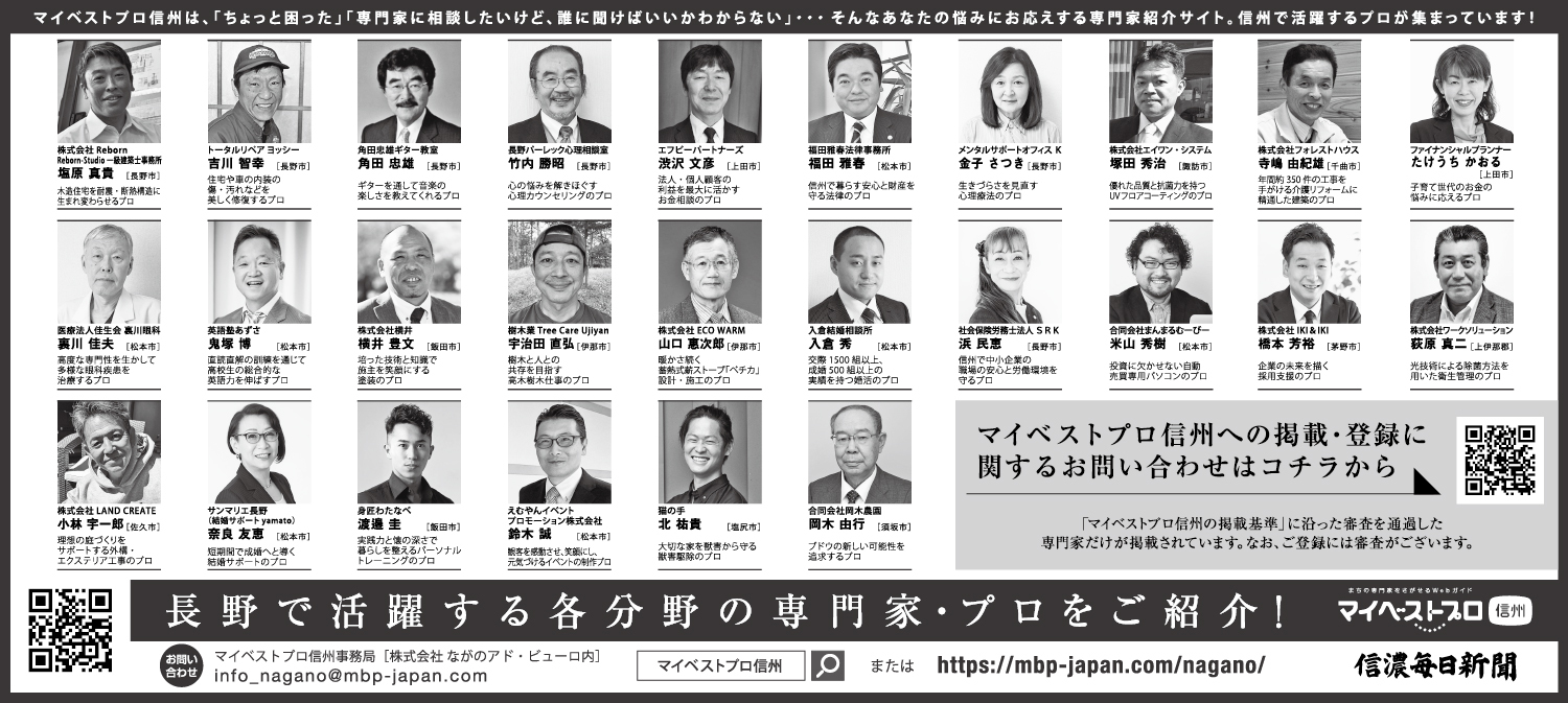 2025年7月15日(火)信濃毎日新聞に「マイベストプロ信州」の顔写真付き新聞広告が掲載されました!