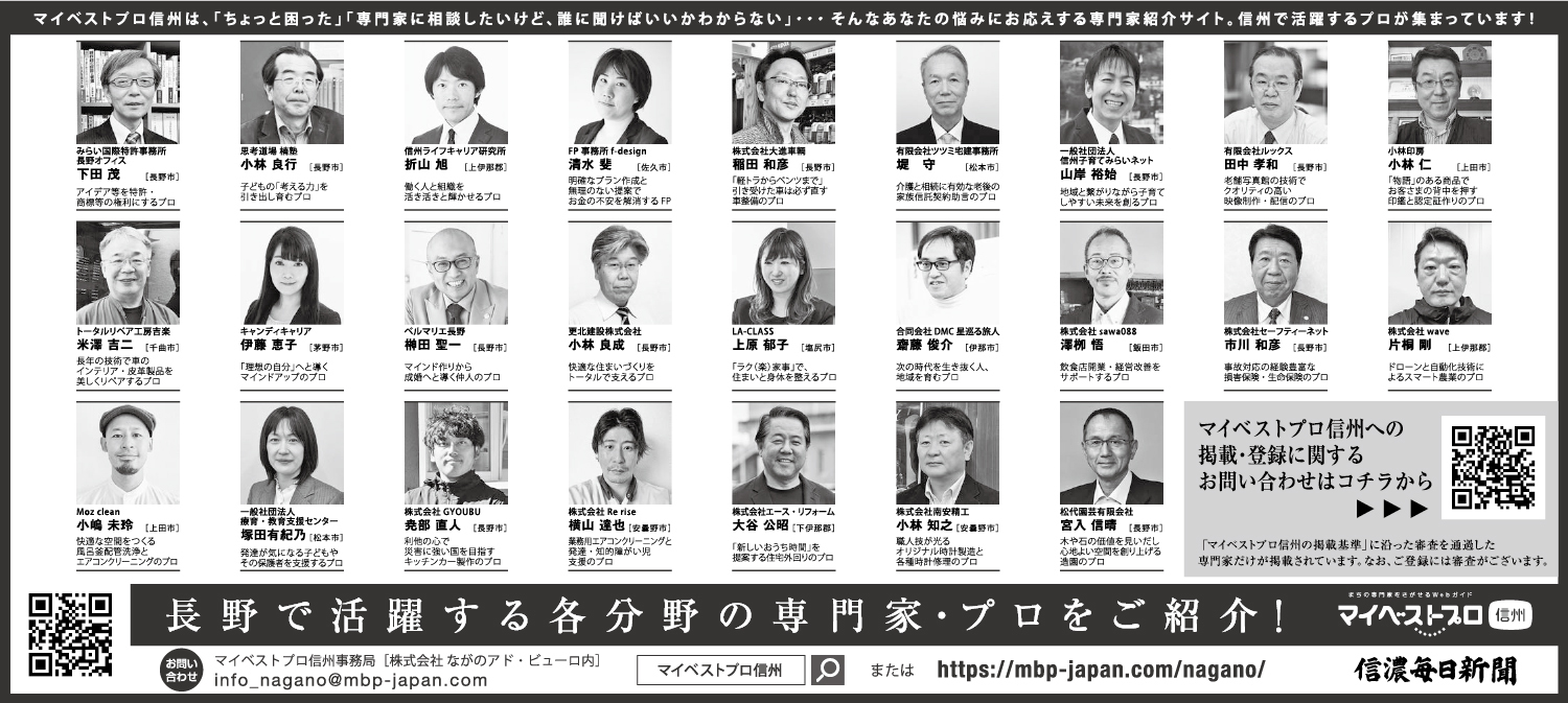 2025年8月19日(火)信濃毎日新聞に「マイベストプロ信州」の顔写真付き新聞広告が掲載されました!
