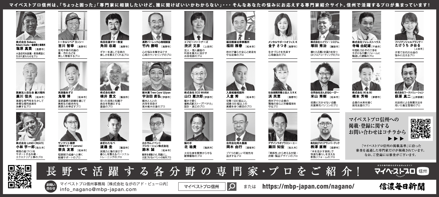 2025年9月15日(月)信濃毎日新聞に「マイベストプロ信州」の顔写真付き新聞広告が掲載されました!