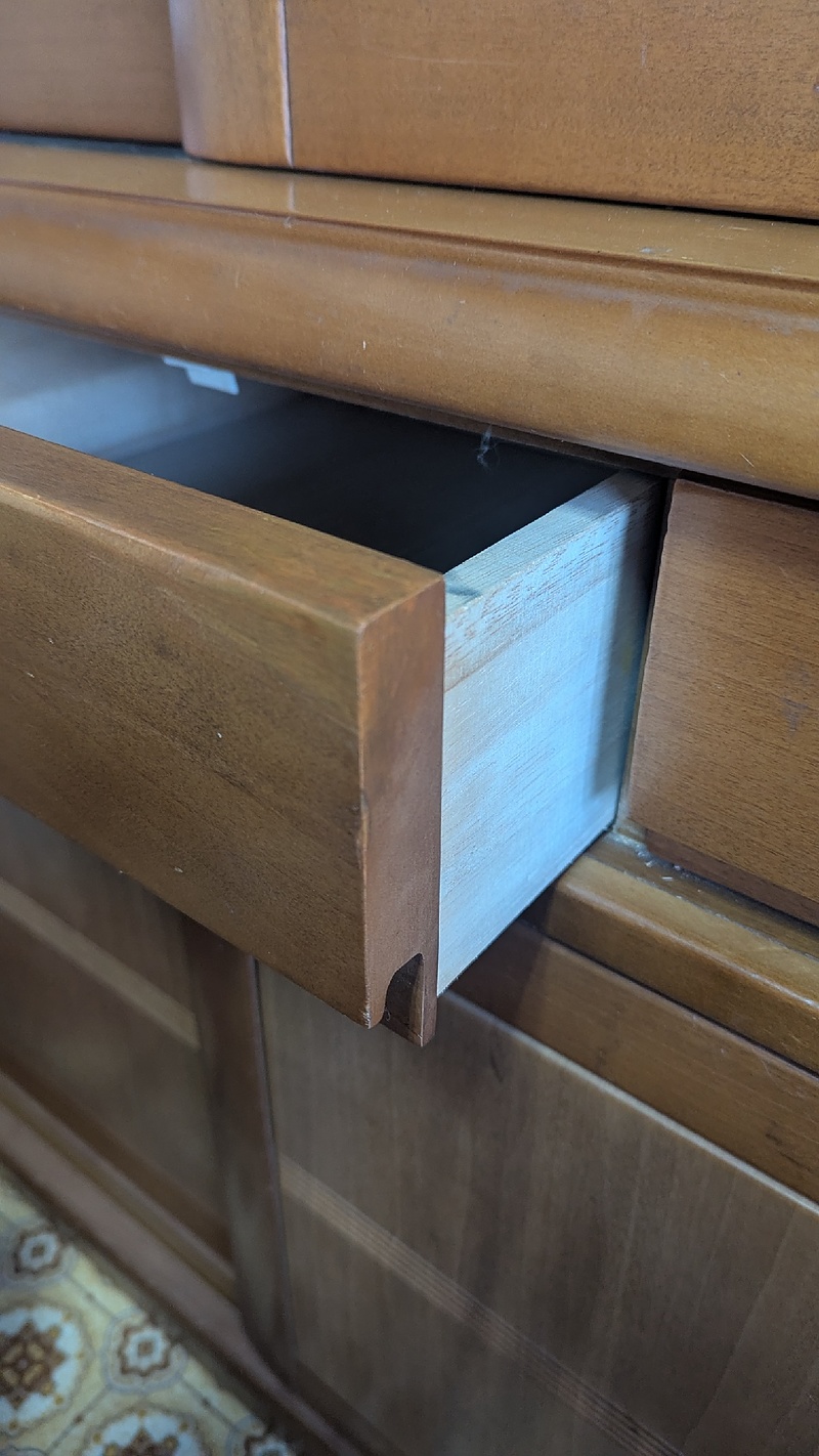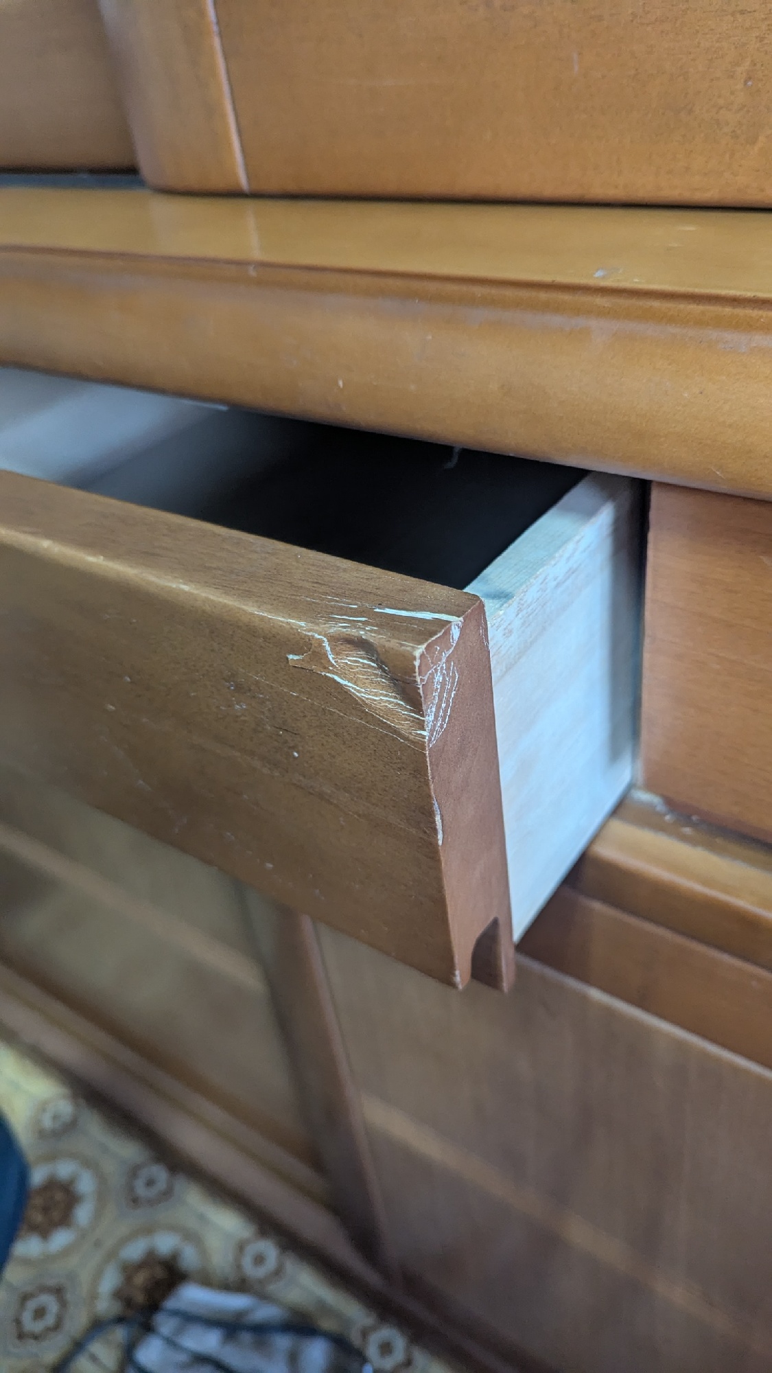 今日は長野で家具食器棚引き出しの凹みキズ補修、リペアでした。