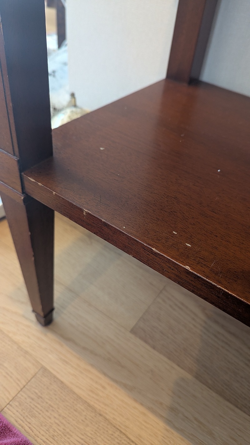 今日は長野でアンティーク家具サイドテーブルの傷、欠け補修、リペアでした。