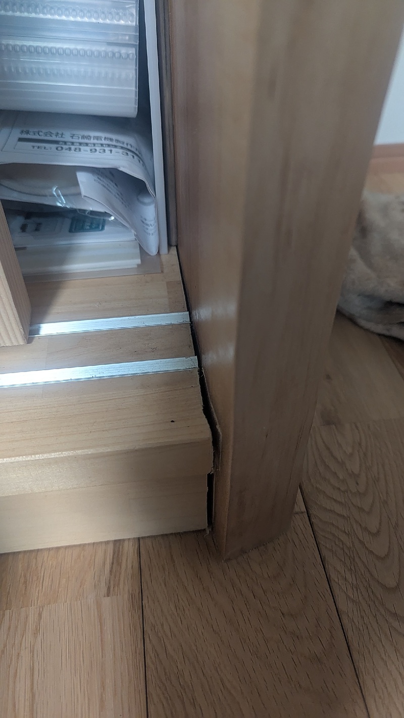 ハードパテで隙間を埋めて、成形して色木目を合せて仕上げました。
