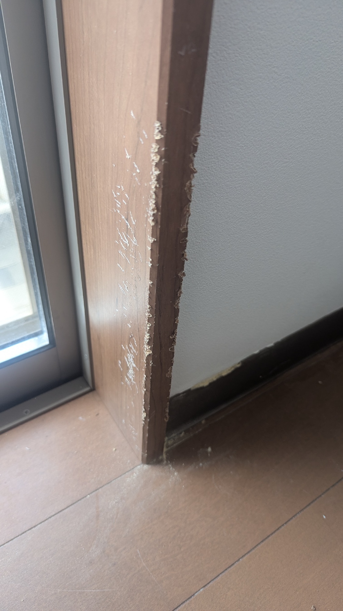 今日は長野で住宅建具窓枠のペット引っかきキズ、欠けの補修、リペアでした。
