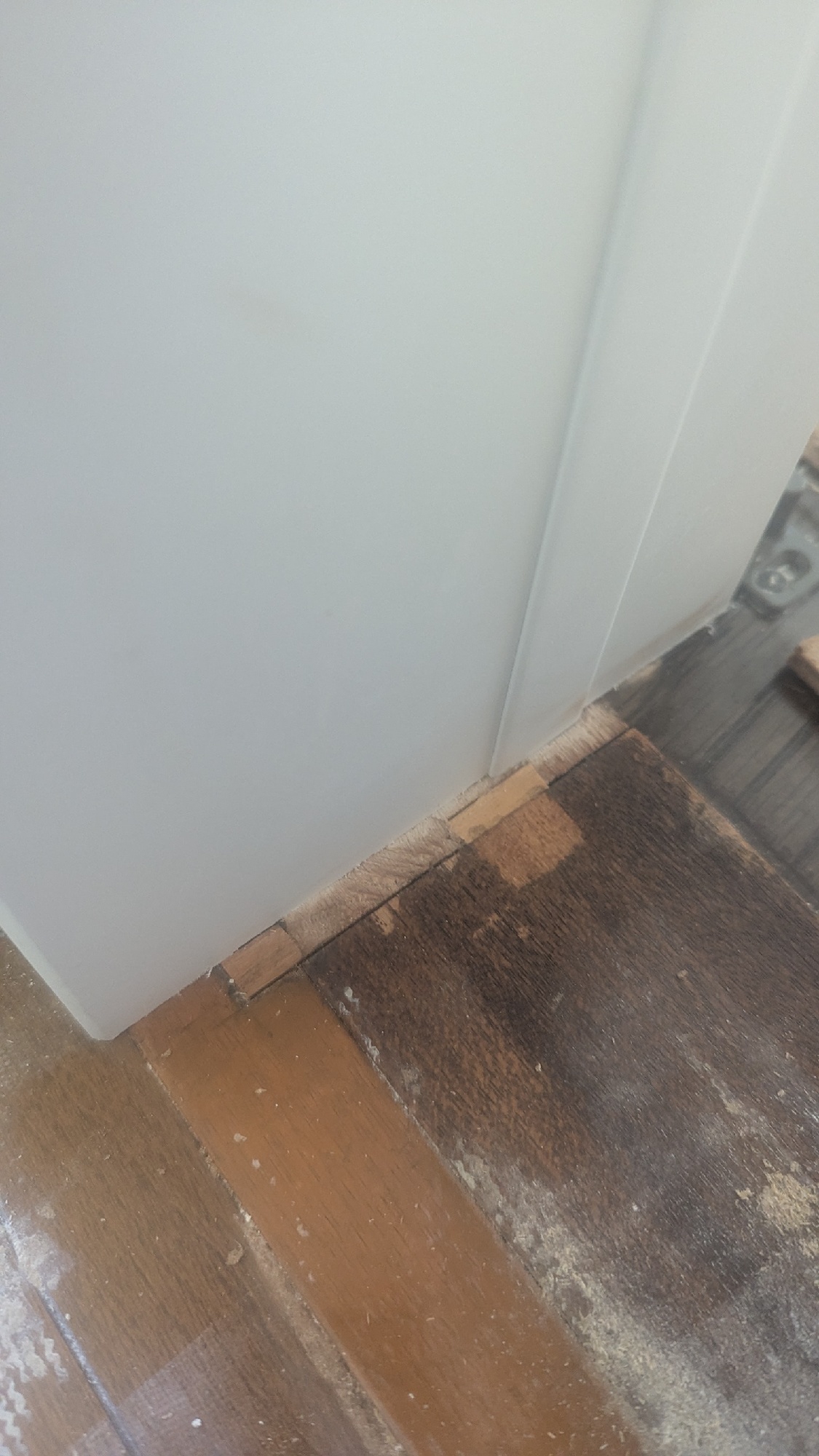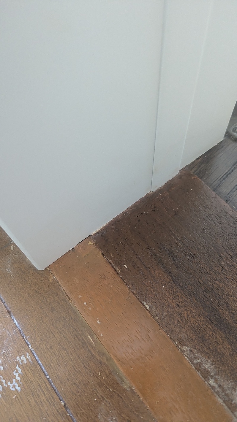 今日は長野でリフォーム住宅の床、フローリングのキズ、隙間補修、リペアでした。 施工前です。