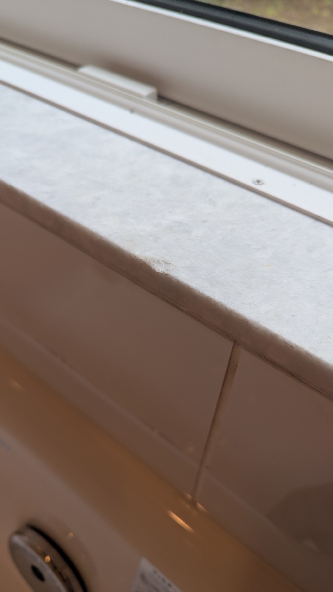 今日は長野で別荘ユニットバスの大理石窓枠の欠け、キズ補修、リペアでした。