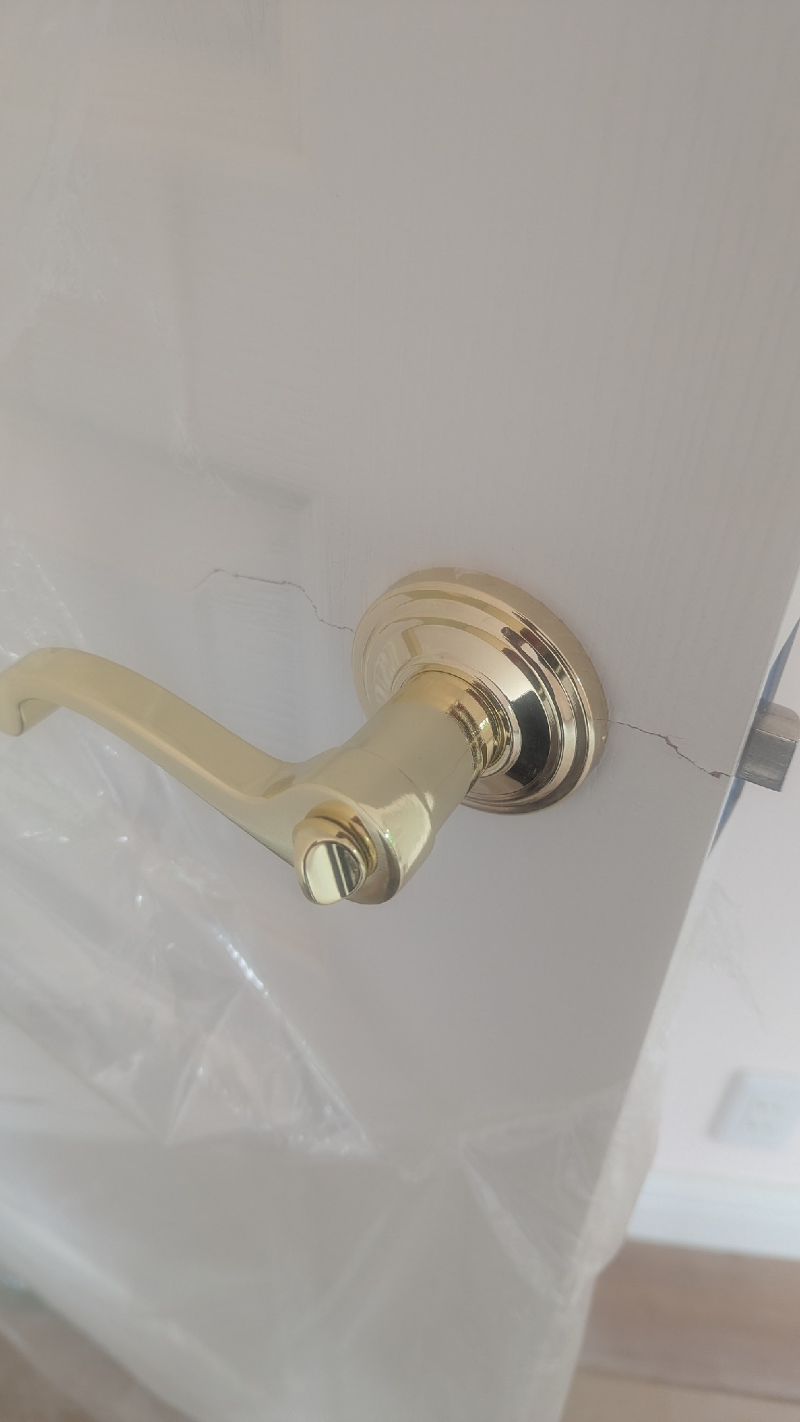 今日は長野での新築別荘のドア割れ、キズ補修、リペアでした。 施工前です。