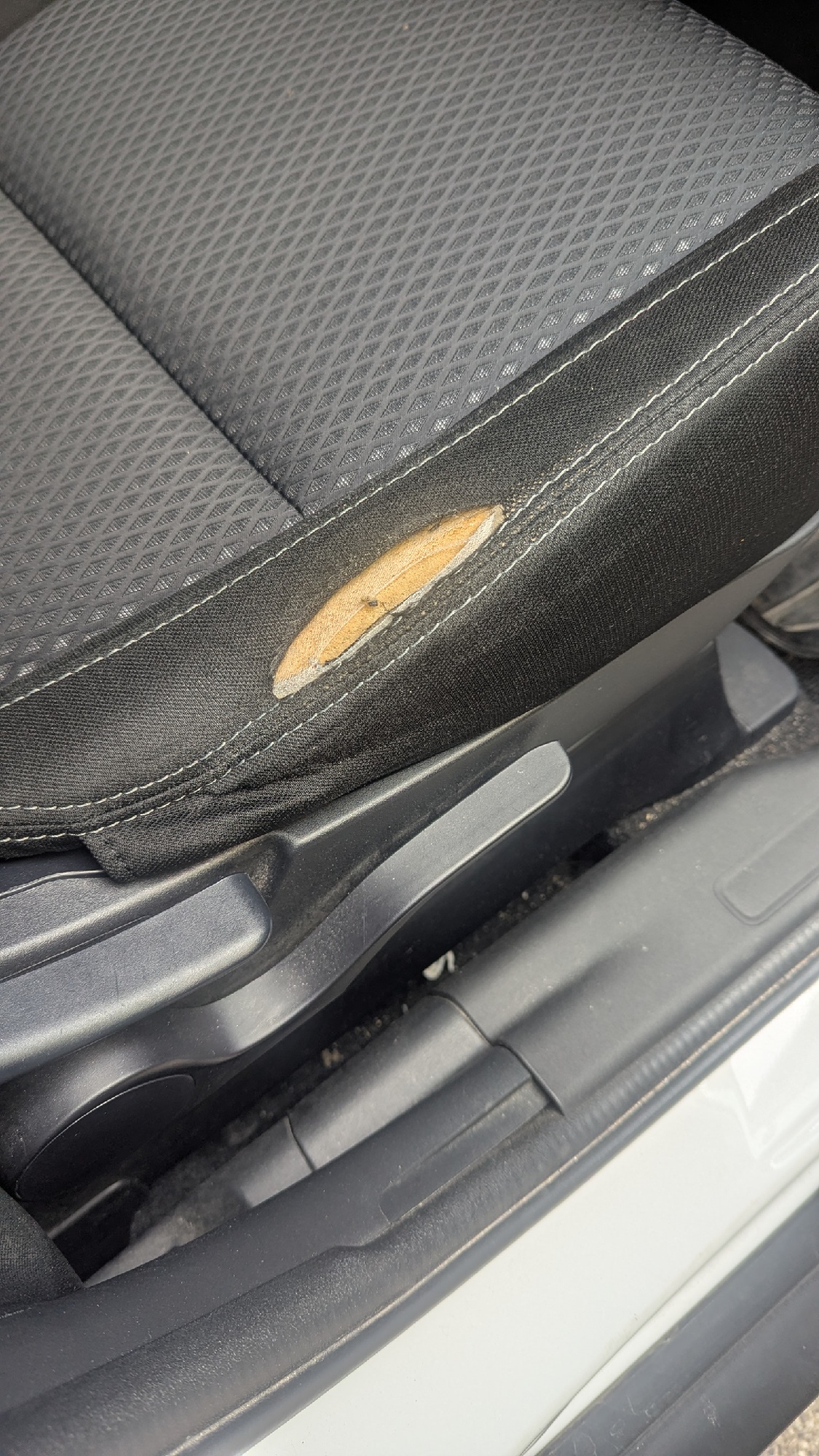 今日は長野で車モケットシートサイドサポートの破れ穴補修、リペアでした。