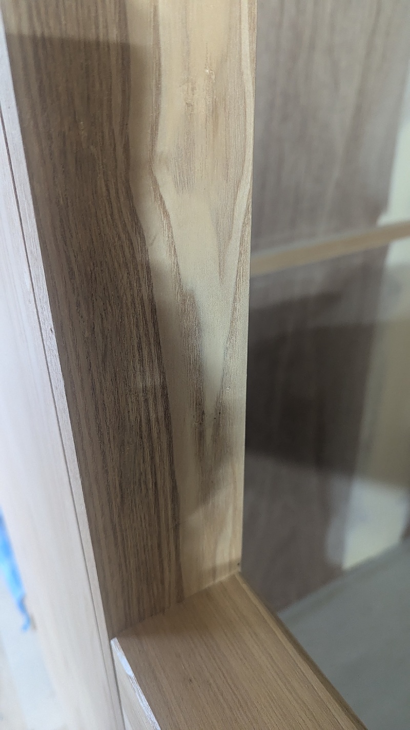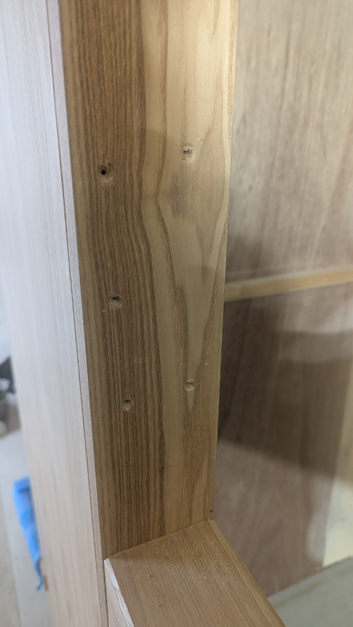 パテ埋めして色木目を合せて仕上げましたが無垢材は難しかったです。