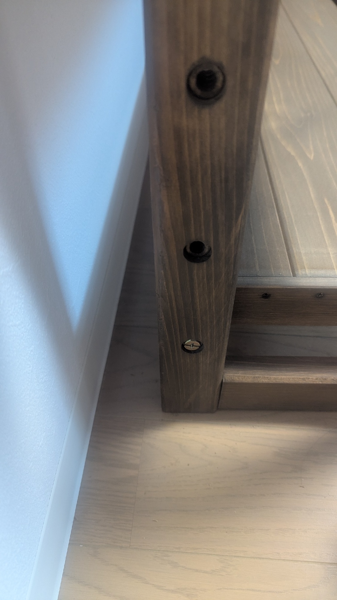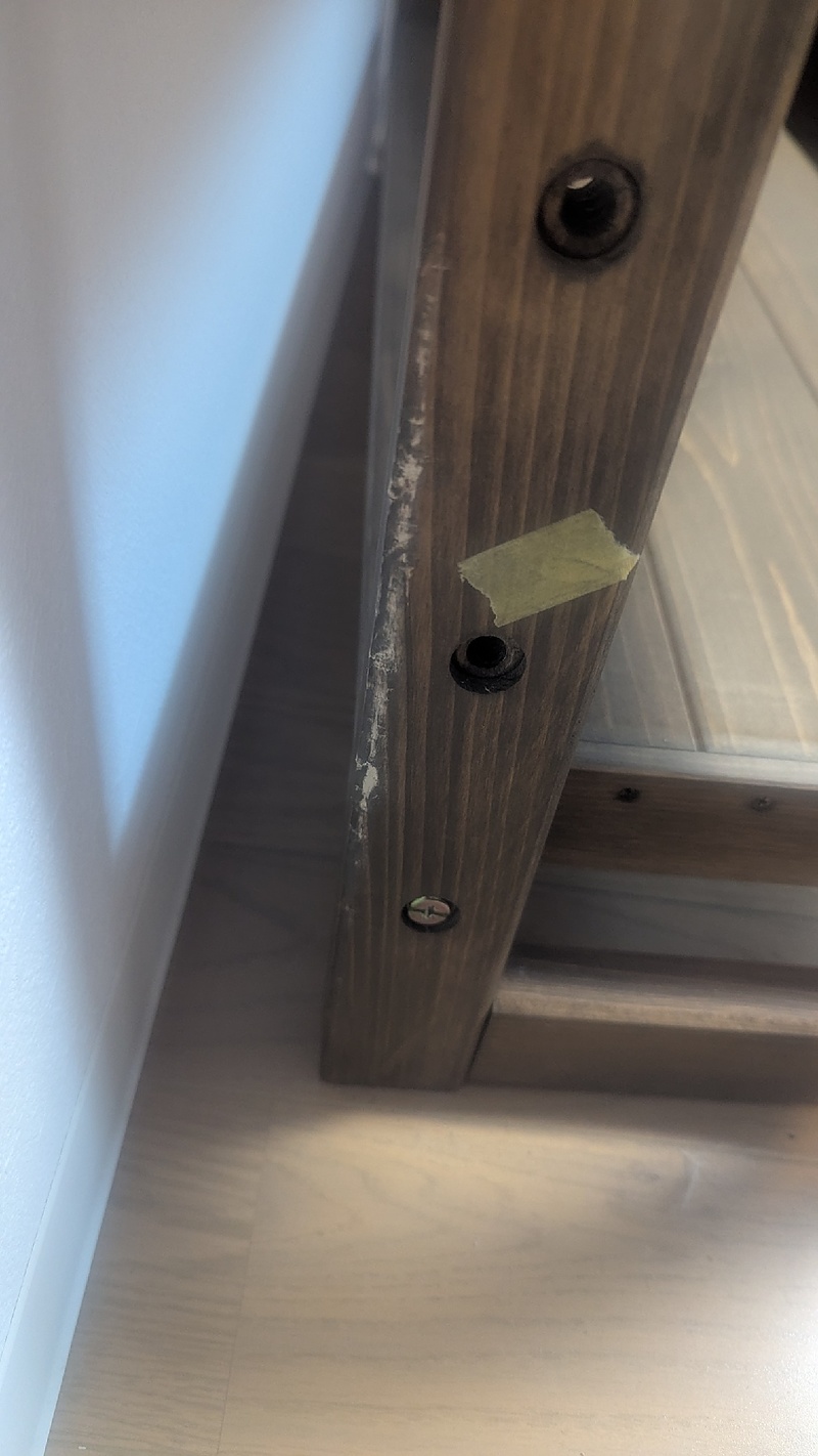 凹みをパテ埋めして色木目を合せて仕上げました。