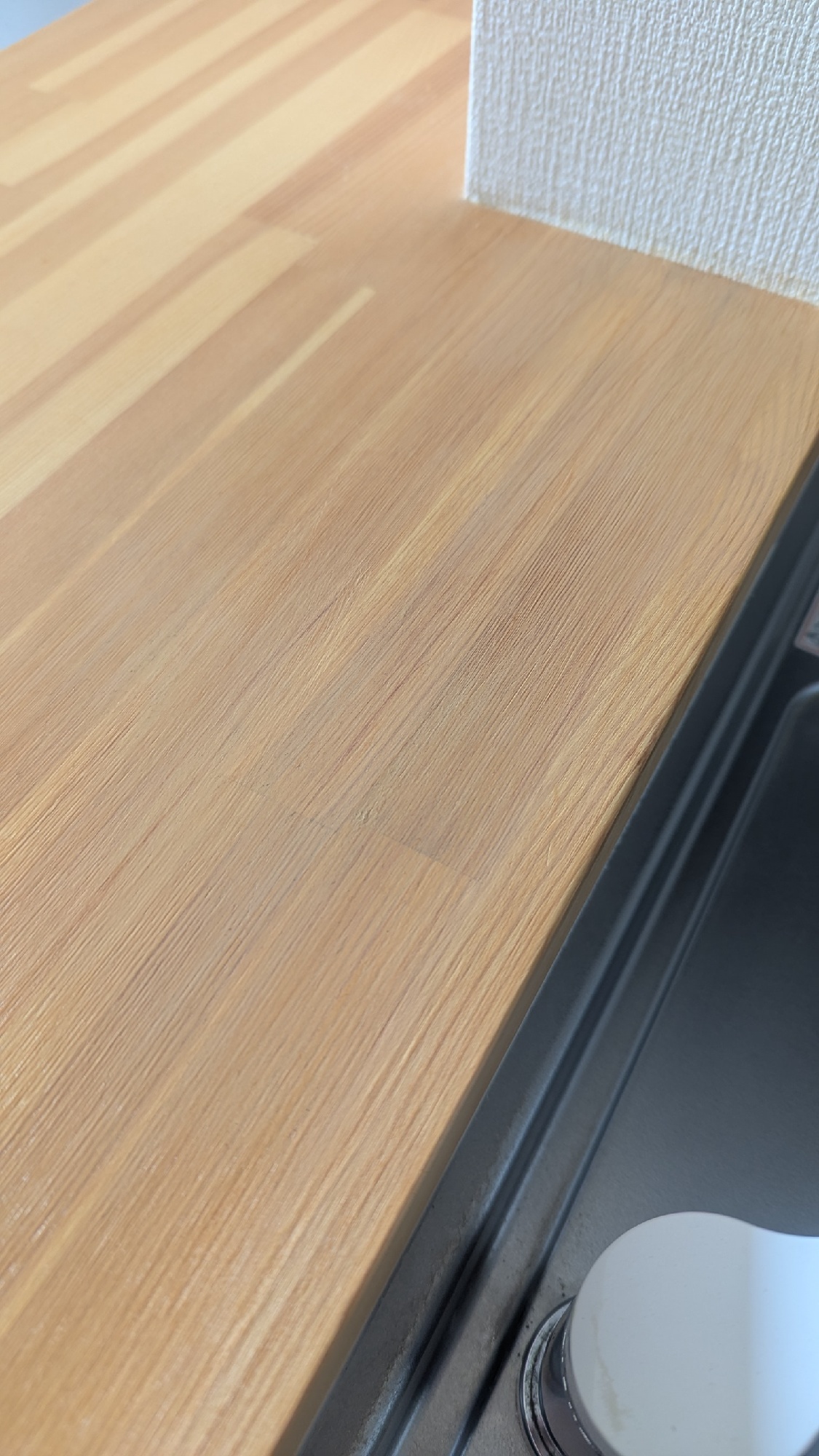 今日は長野で中古アパートのキッチン天板シミ補修、リペアでした。