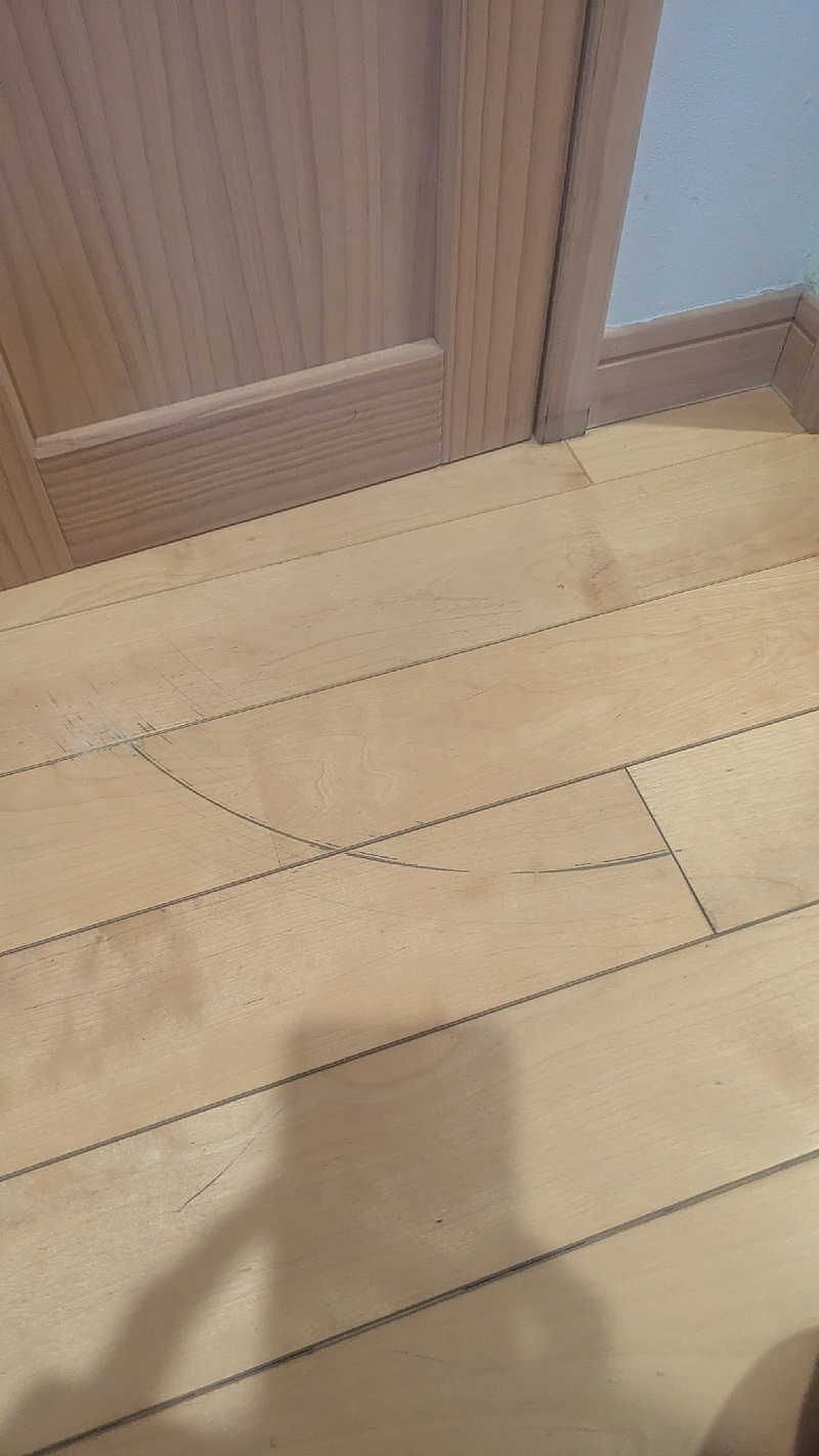 今日は長野住宅の床、フローリングのドア引きずりキズの補修、リペアでした。