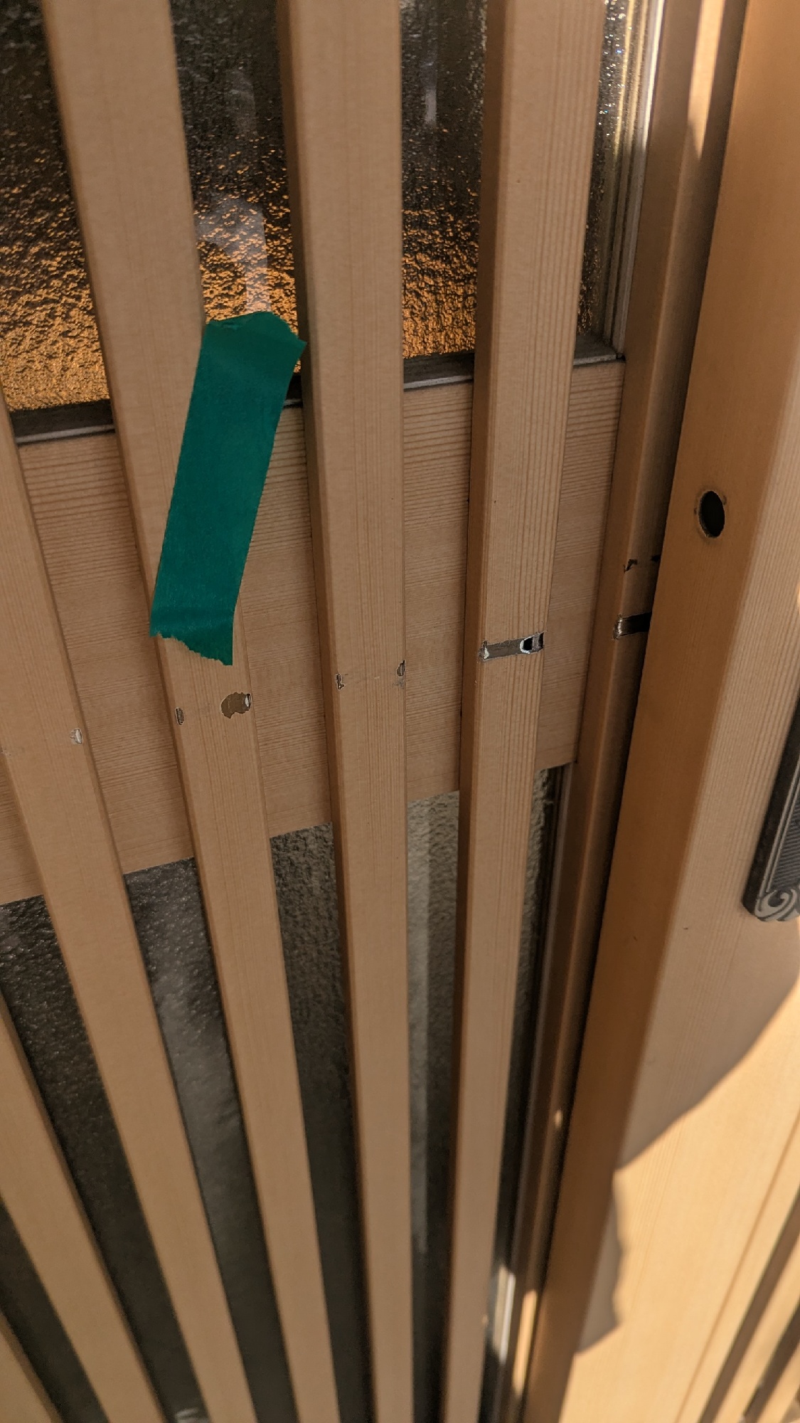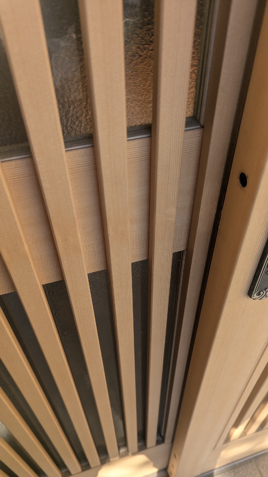 今日は長野で住宅玄関引戸のキズ、剥がれ補修、リペアでした。