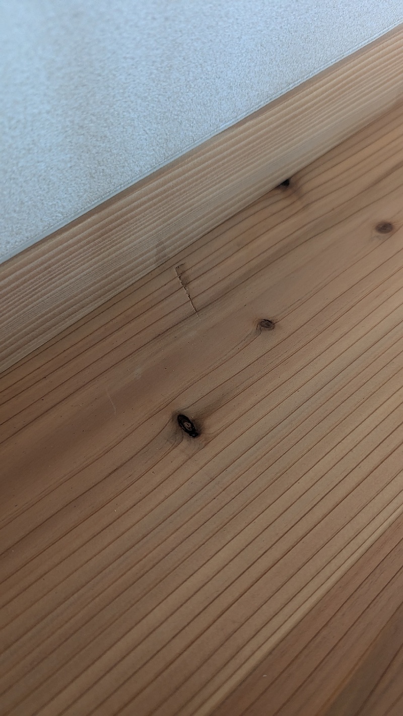今日は長野で住宅無垢材床フローリングのキズ、剥がれ補修、リペアでした。