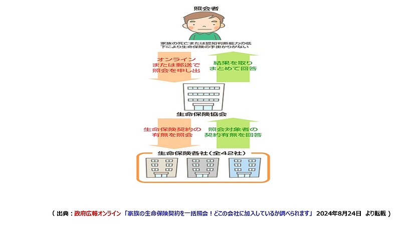 本章において、画像 ; 文章など⇒ 政府広報オンライン 「家族の生命保険契約を一括照会!どこの会社に加入しているか調べられます」 2024年8月24日 より一部転載~筆者にて編集しております。