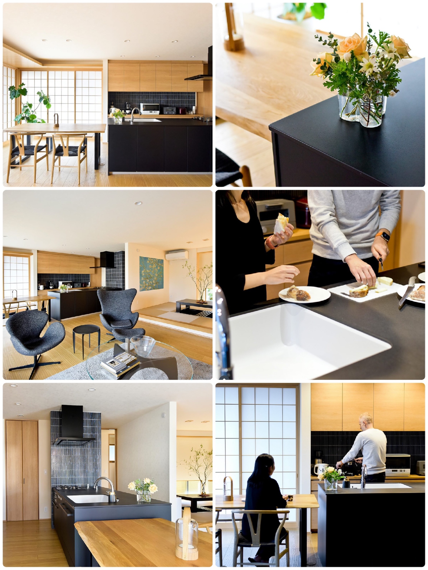 奥さまのご実家の敷地内に新居を構えられました。おふたりの希望で和の要素を取り入れたモダンな住まいです。LDKの掃き出し窓は全て障子で統一。ご主人が憧れだった和室も設けました。