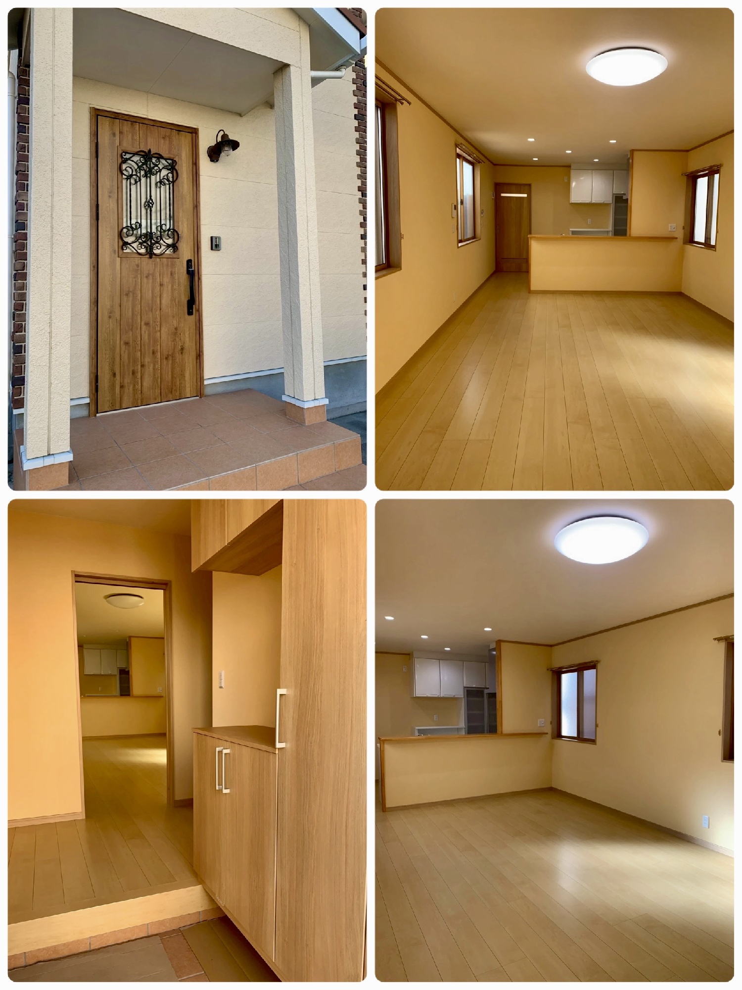 ・左上:玄関ポーチから ・左下:玄関ホールへ ・右上/右下:リビング/ダイニング/キッチン